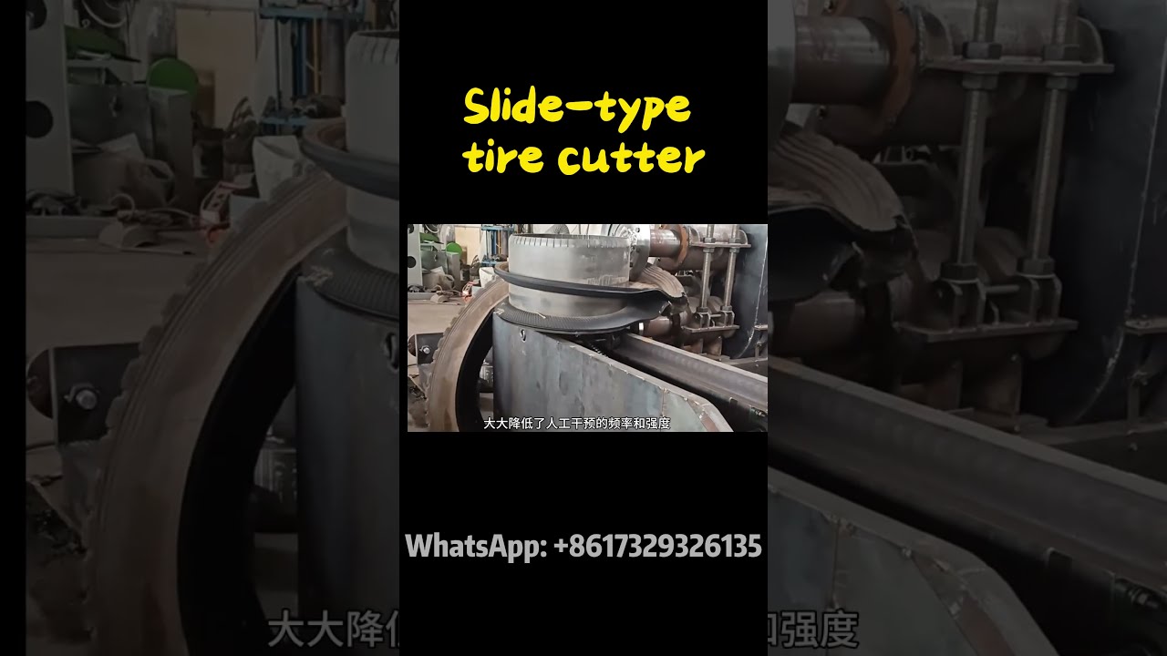 - L'opérateur place un pneu usagé sur le rail de glissière. En utilisant la gravité et la structure de la glissière, le pneu se déplace automatiquement en position de coupe, réduisant la manipulation manuelle et améliorant la sécurité ainsi que la continuité du travail.